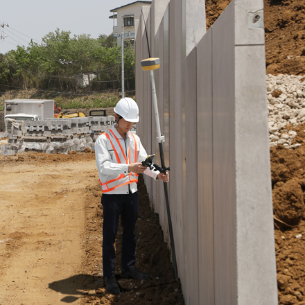 | 路線に応じた中心杭離れ / 測設誘導 / 横断観測 / 丁張設置などがマップ画面上でリアルタイムに把握でき、 土木測量の大幅な効率化を実現します。 | |