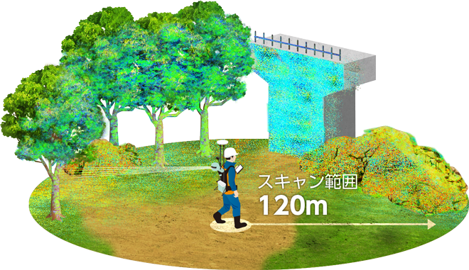 狭い、細い、複雑な場所であっても“歩くだけ”で、素早く3Dデータを取得できます。現況はもちろん、他の3D計測手法では計測が困難な現場や、構造物の計測にも柔軟に対応する2種類のモバイルスキャナーをラインナップ。ハンディタイプとバックパックタイプが選べ、様々な計測シーンで活躍します。取得した3Dデータにより、現場の“見える化”が実現し、工事の計画や図面の作成等に役立ちます。 |