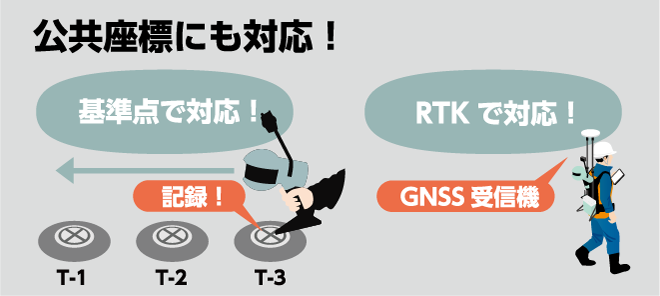 現場踏査、起工測量、進捗管理、仮設・施工計画、土量計算、構造物計測など、幅広く活用できます。 |