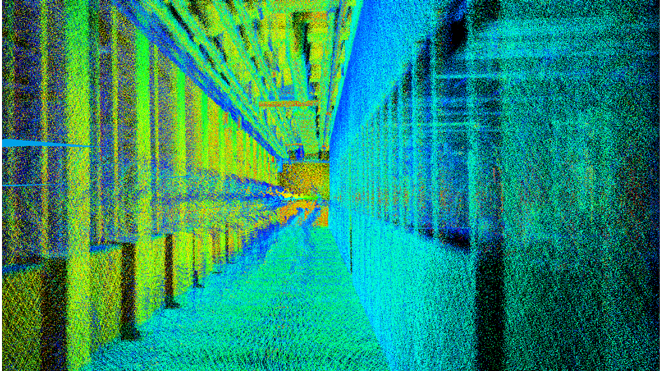 █ 専用解析ソフトウェア 自動SLAM 解析により、 歩いた軌跡が点群に。 |