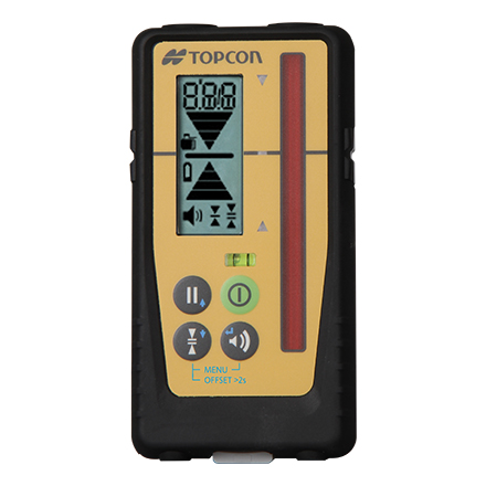 スタンダードなレベルセンサーです。求めたい高さとの差を矢印とブザーで伝えるほか、RL-H5A本体のバッテリー残量や、セイフティーロック(ハイアラート)機能の表示も備えています。 |