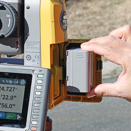大きく見やすいディスプレイは、角度・距離などの測定値を瞬時に視認でき、プリズム、通信、バッテリーの状態なども一目で把握できます。シンプルなボタン配置により、扱いやすく高い操作性を実現しました。 |